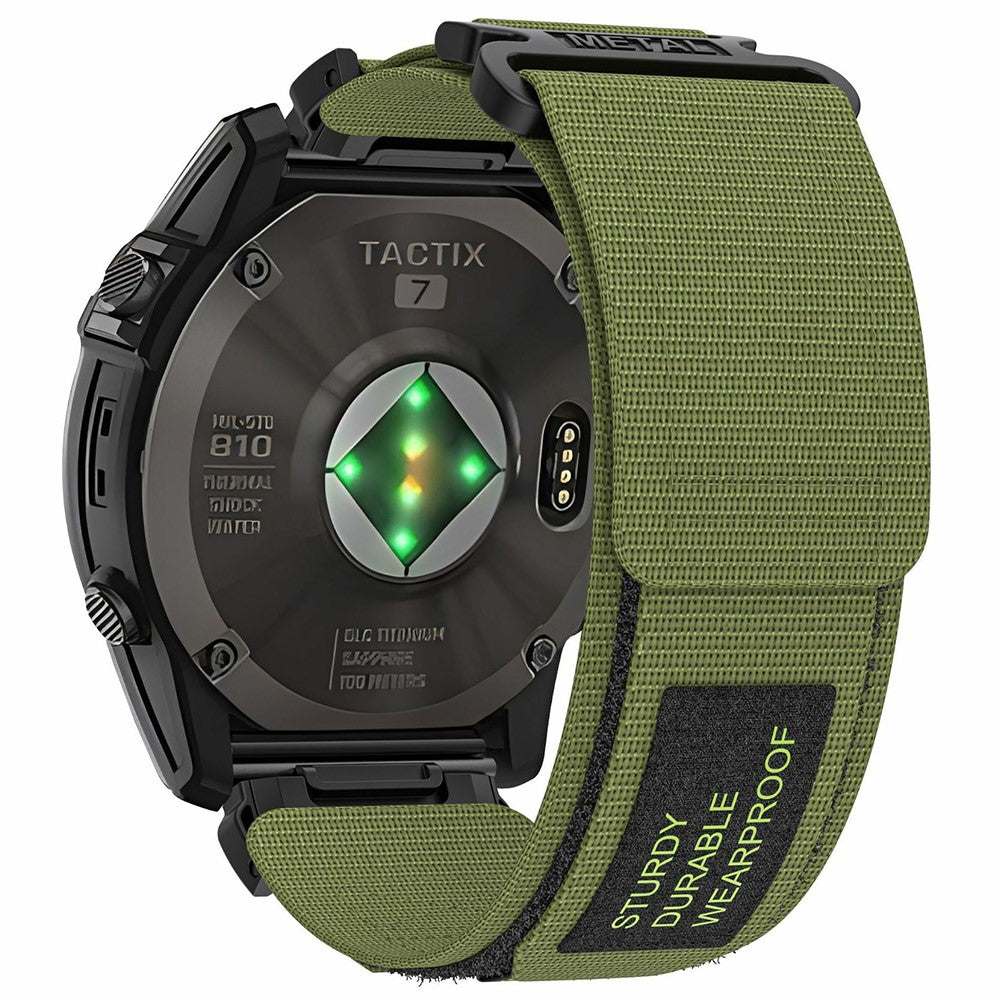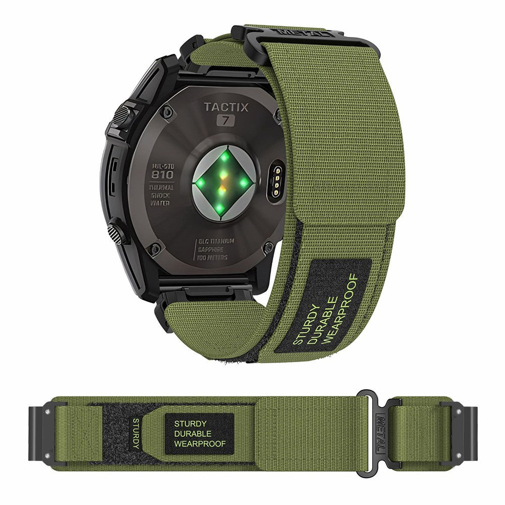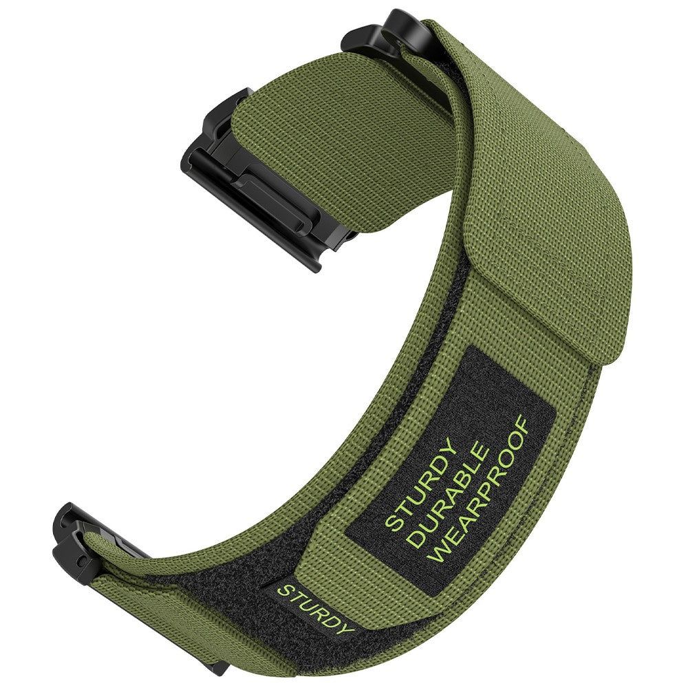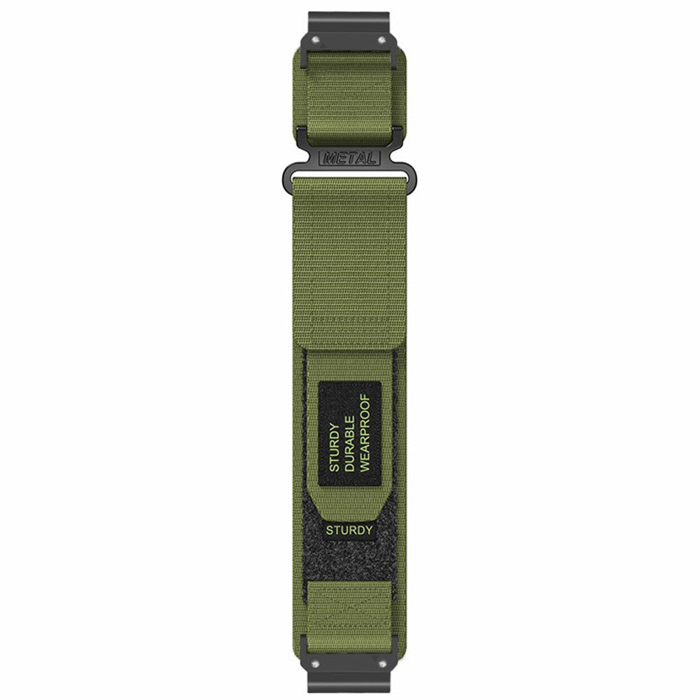 Vihreä nylonranneke vihreällä tekstillä. Rannekkeen leveys kiinnityskohdasta 22mm.